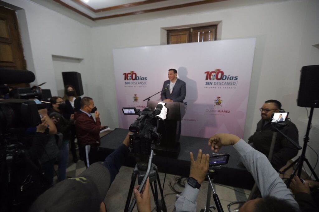 CD. JUAREZ, CHIH.- El Presidente Municipal Cruz Pérez Cuéllar envió un mensaje a las y los juarenses con motivo de los primeros 100 días de gobierno en el que detalló el arduo trabajo que realizó junto con su equipo de colaboradores, empleados municipales y sociedad juarense, sin descanso para poner en marcha la transformación de Ciudad Juárez.