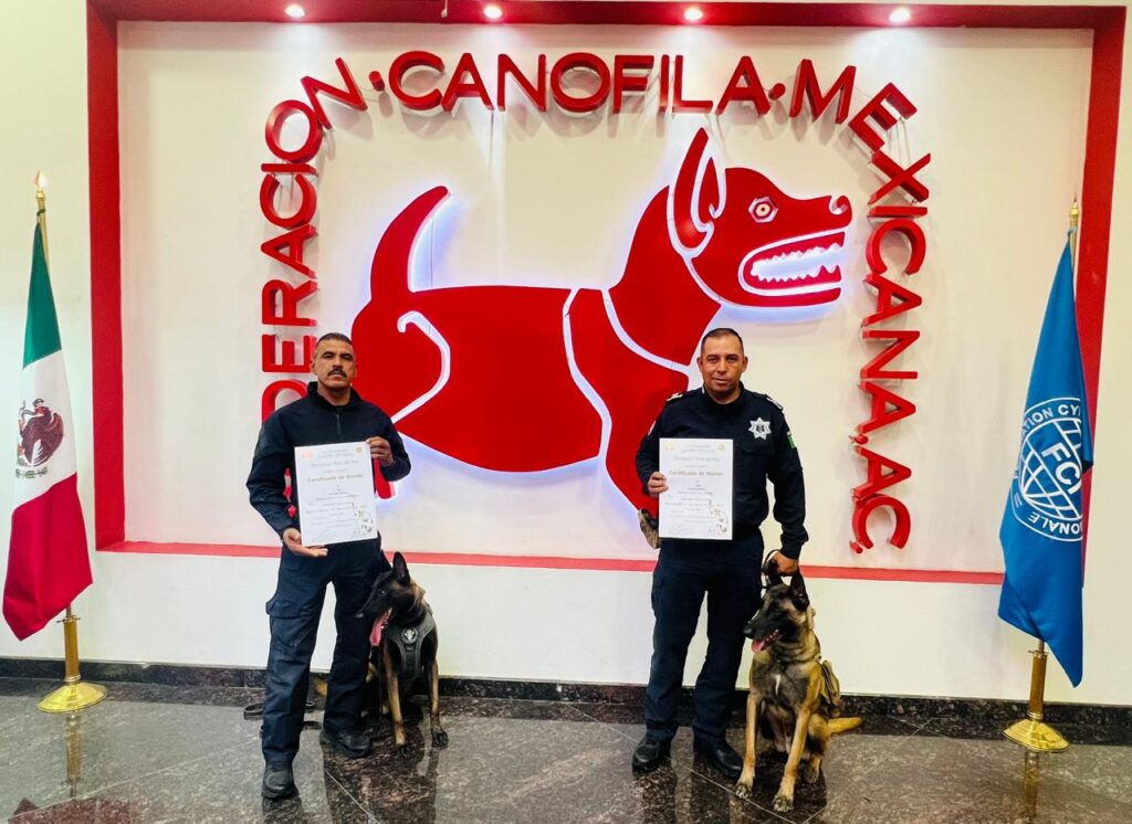 CD. JUAREZ, CHIH.- Elementos caninos y sus manejadores pertenecientes a la división K9 de la Secretaría de Seguridad Pública Municipal, obtuvieron el reconocimiento en la justa denominada “Mejor perro del año en trabajo y servicio 2023” por parte de la Federación Canófila Mexicana.