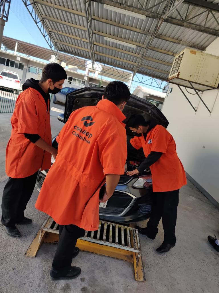 El Colegio de Educación Profesional Técnica del Estado de Chihuahua (CONALEP) Plantel Juárez II, brinda la oportunidad de que sus estudiantes pongan en práctica sus conocimientos en mecánica, al ofrecer en sus instalaciones el servicio de afinaciones a la ciudadanía en general.