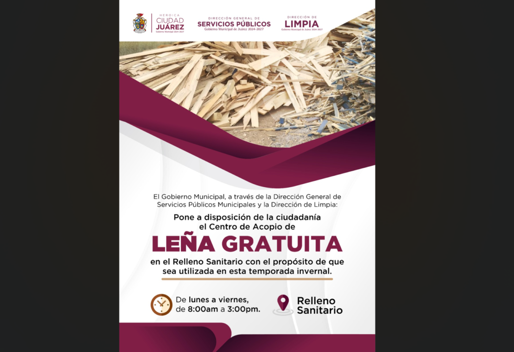 CD. JUAREZ, CHIH.- La Dirección General de Servicios Públicos Municipales, a través de la Dirección de Limpia, pone a disposición de la ciudadanía leña gratuita en el Centro de Acopio del Relleno Sanitario.