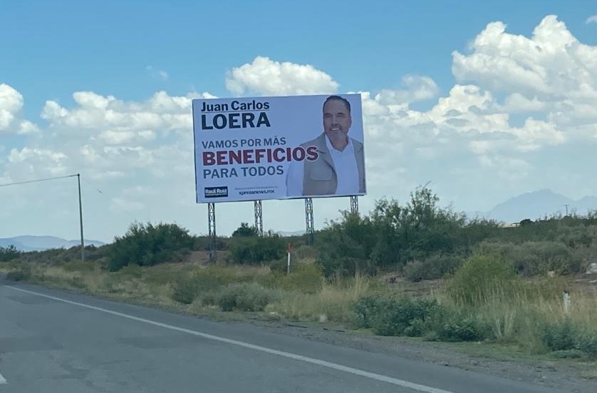 Otra vez el que se asoma y sigue aferrado en buscar una candidatura es el delegado federal Juan Carlos Loera de la Rosa, quien le sigue apostando a los espectaculares.