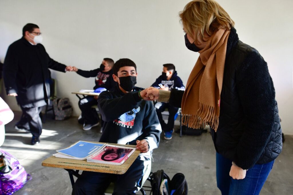 CHIHUAHUA, CHIH.- La Gobernadora del Estado visitó esta mañana la Escuela Secundaria Técnica No. 50 (EST 50), donde dialogó con directivos, personal docente y alumnos del plantel, en lo que fue el regreso a las clases presenciales, de acuerdo a lo dictaminado por el Consejo Estatal de Salud.