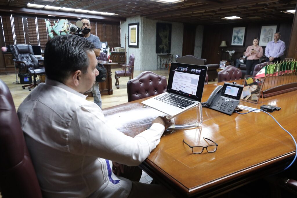 CD. JUAREZ, CHIH.- El Presidente Municipal, Cruz Pérez Cuéllar, participó hoy en un diálogo, a través de una plataforma digital, con Rosa Isela Rodríguez Velázquez, titular de la Secretaria de Seguridad y Protección Ciudadana del Gobierno Federal y con representantes de 15 municipios de distintas regiones del país con atención prioritaria en temas de seguridad.