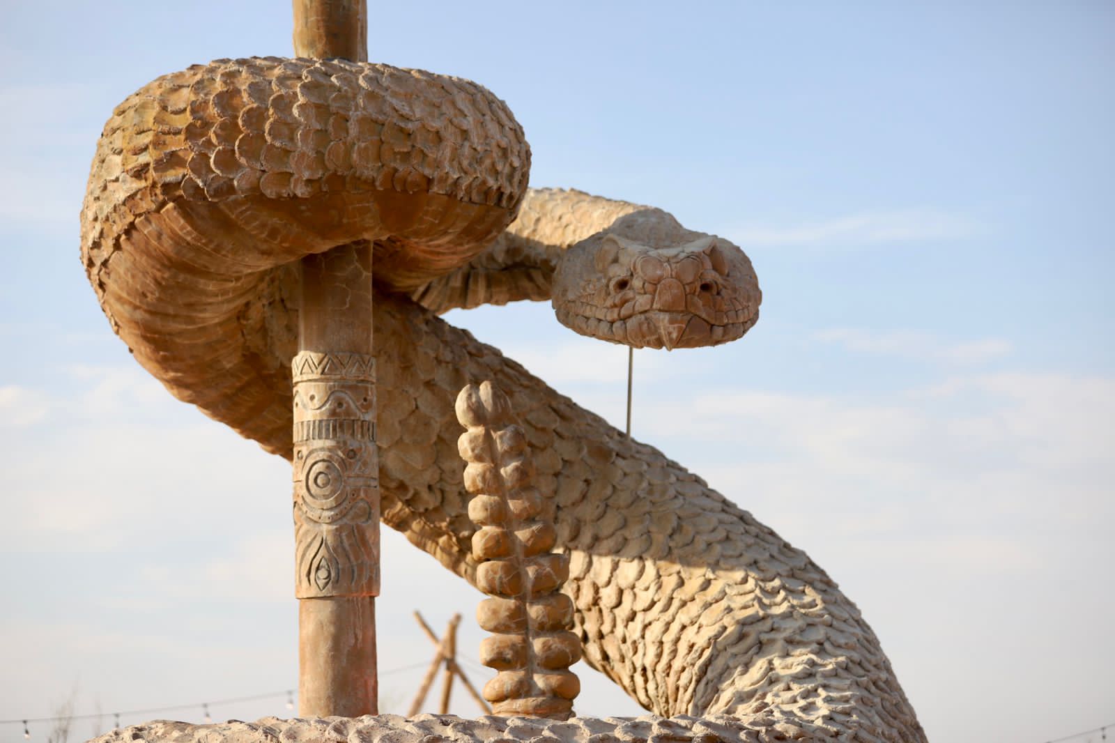La serpiente de cascabel es una escultura de 6.5 metros de altura y 10 toneladas de peso.
