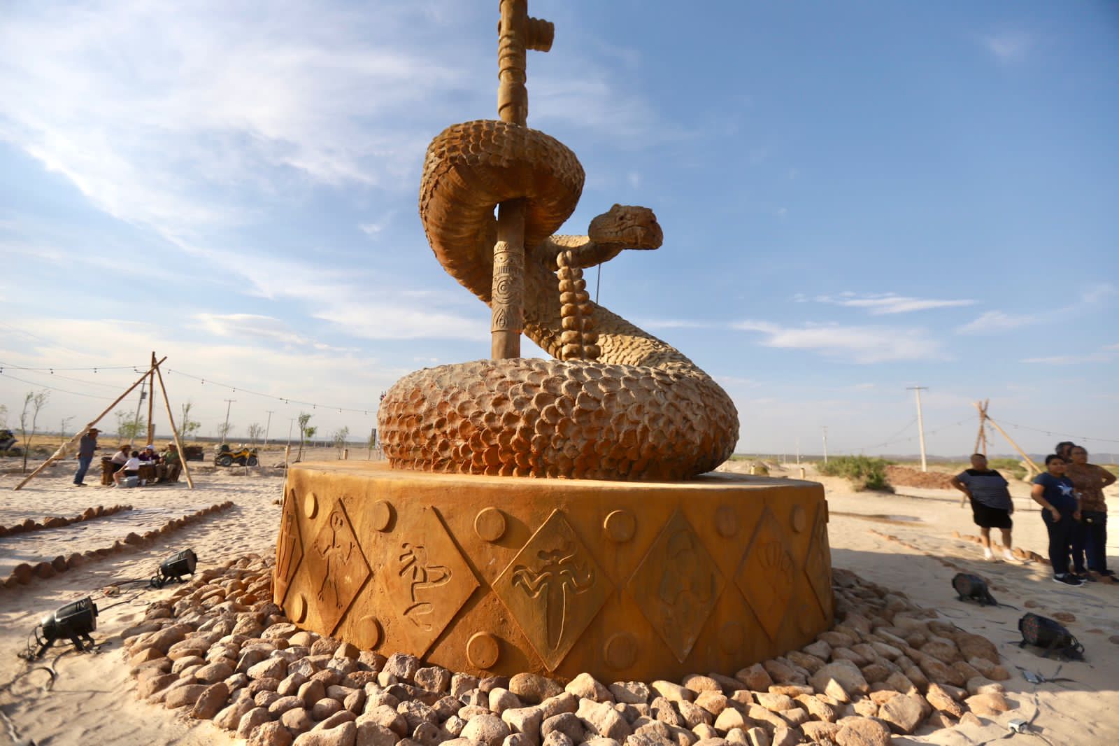 CD. JUAREZ, CHIH.- El Presidente Municipal, Cruz Pérez Cuéllar, participó en la ceremonia de inauguración de la escultura “Guardián del Territorio”, una gigantesca escultura con forma de una víbora de cascabel, la cual puede ser apreciada desde hoy en Samalayuca.