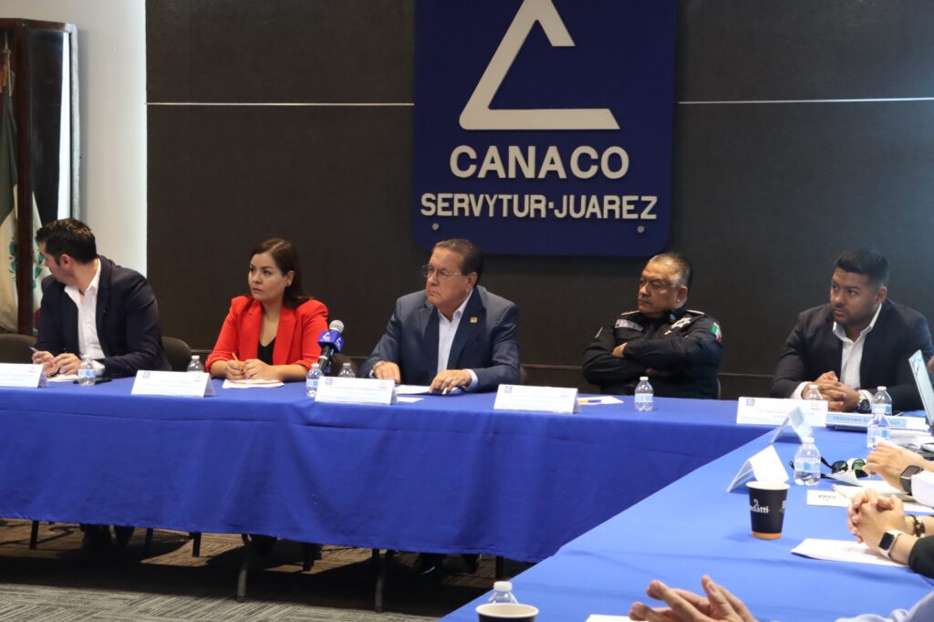 CD. JUAREZ, CHIH.- El titular de la Secretaría de Seguridad Pública Municipal, César Omar Muñoz Morales, sostuvo una reunión de trabajo con integrantes de la Cámara Nacional de Comercio, para revisar el tema del operativo especial que se implementará con motivo del programa “El Buen Fin”.