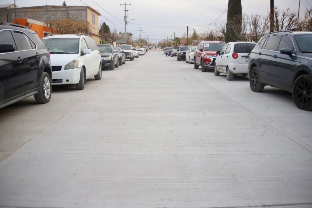 CD. JUAREZ, CHIH.- Con concreto hidráulico y la aportación del 75 por ciento por parte del Gobierno Municipal, fue entregada la pavimentación de la calle Agustín Gallo, en la colonia Los Alcaldes, obra a cargo del Sistema de Urbanización Municipal Adicional.