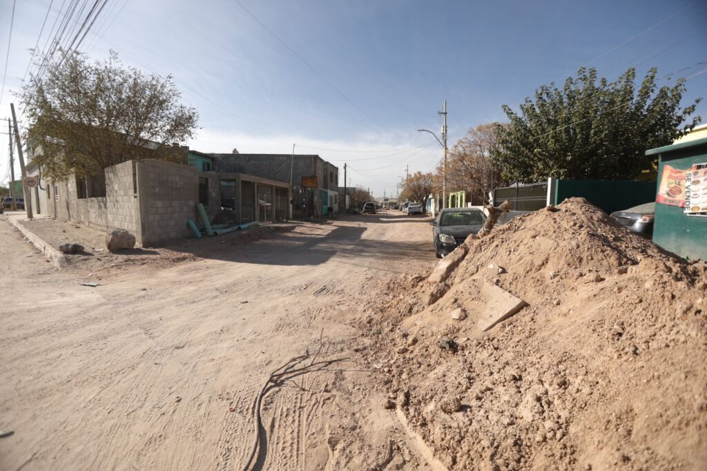 CD. JUAREZ, CHIH.- Como parte del Programa de Mejoramiento de Vialidades, la Dirección General de Obras Públicas, trabaja en la pavimentación de la calle Concepción Álvarez en la colonia Profesora María Martínez, en lo cual se lleva un avance del 30 por ciento.