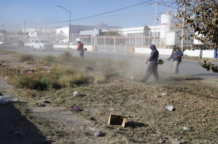 Atiende Parques y Jardines camellón en el Parque Industrial Juárez