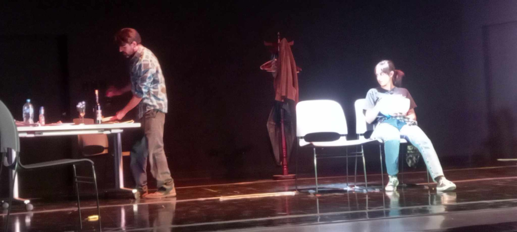 En un diálogo donde ambos empiezan a reprochar lo injusto que fue el desenlace entre ellos, por una parte, el padre, su vida de intelectual, y por el otro, la hija de un artista, siendo ella adolescente, confusa, inmadura e inconsciente, le reclama toda la atención del padre y su única vía de comunicación era el reproche, por el rompimiento de seno de la familia en la que no encontraba una respuesta lógica a tal separación.