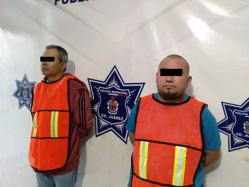CD. JUAREZ, CHIH.- Elementos de la Secretaría de Seguridad Pública Municipal, adscritos al grupo operativo de K-9, detuvieron a José Alfredo J. S. y Joel Arturo C. P., por su presunta responsabilidad en la comisión del delito de contrabando y/o lo que resulte.
