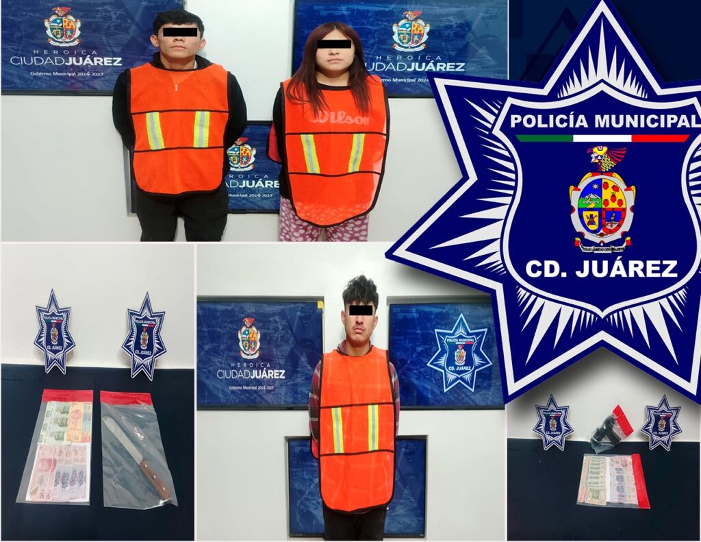CD. JUAREZ, CHIH.- Agentes municipales realizaron la detención de tres presuntos asaltantes de tiendas de conveniencia por su presunta responsabilidad en la comisión del delito de robo con violencia en distintos hechos.