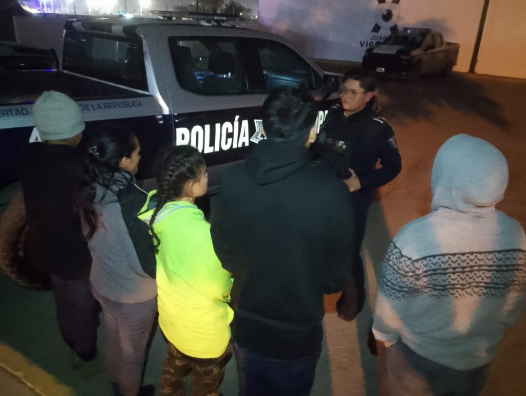CD. JUAREZ, CHIH.- Elementos de la Secretaría de Seguridad Pública Municipal adscritos a la Estación de Policía del Distrito Oriente, realizaron el resguardo de cinco personas en situación de movilidad.