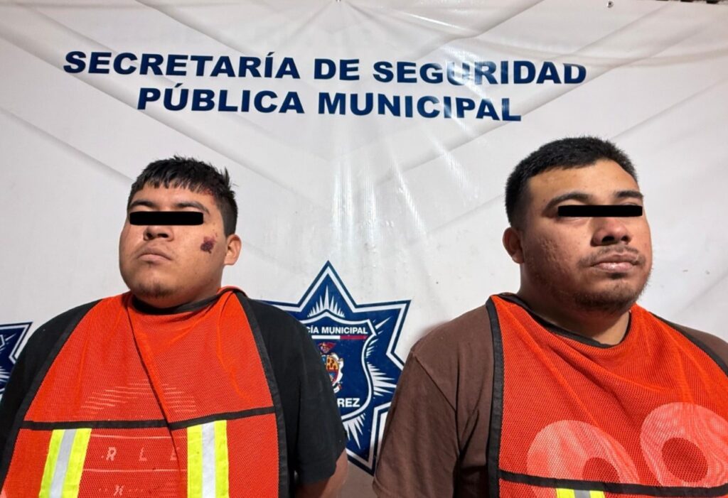 CD. JUAREZ, CHIH.- Elementos de la Secretaría de Seguridad Pública Municipal arrestaron a, Jonathan Josué J. O. y Luis Miguel H. D., por su presunta responsabilidad en la comisión de los delitos de secuestro y delitos contra la ley federal de armas de fuego y explosivos, logrando el rescate de 15 personas retenidas en contra de su voluntad, originarios de distintos estados de la república, países de América y del Oriente.