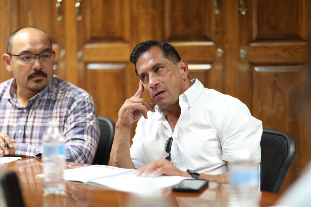 Arturo Rivera Barreno y Gibran Solís Kanahan platicaron con el regidor Héctor Hugo Avitia Arellanes, quien estuvo vía remota por motivos de salud y Jorge Marcial Bueno Quiroz para dar a conocer los trabajos que se harán en los cementerios municipales.