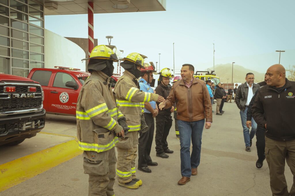 CD. JUAREZ, CHIH.- Este día el Presidente Municipal, Cruz Pérez Cuéllar, se reunió con el equipo de respuesta de la Dirección de Protección Civil para la toma de una fotografía oficial, como parte de los preparativos para el simulacro de sismo que se llevará a cabo el próximo viernes 28 de marzo a las 11:00 de la mañana.