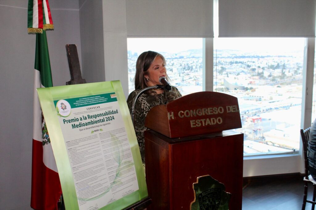 CHIHUAHUA, CHIH.- Esta mañana la Diputada por Morena y presidenta de la Comisión de Medio Ambiente, Ecología y Desarrollo Sustentable del Congreso Rosana Díaz Reyes presentó la convocatoria del Premio a la Responsabilidad Medioambiental 2024.