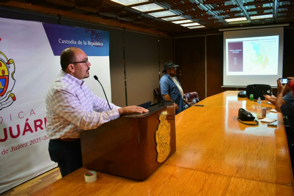 CD. JUAREZ, CHIH.- El director de Limpia, Gibran Solís Kanahan, dio a conocer hoy en conferencia de prensa la información sobre la cobertura que tendrán las cuatro empresas concesionarias que se encargarán del servicio de recolección de basura a partir del próximo 5 de septiembre.
