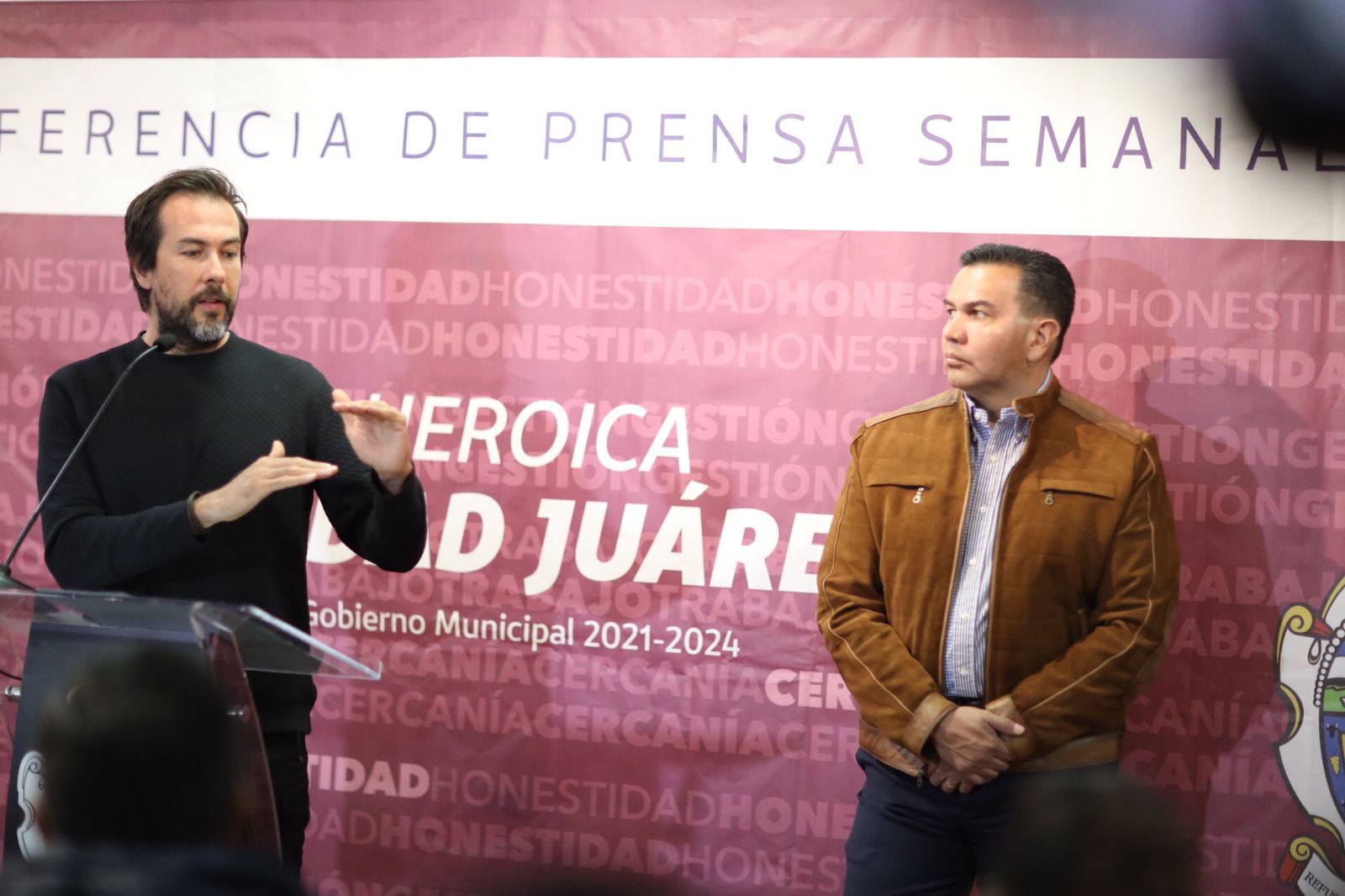 CD. JUAREZ, CHIH.- Durante la conferencia de prensa que ofrece cada semana el Presidente Municipal, Cruz Pérez Cuéllar, se llevó a cabo la presentación del proyecto de rehabilitación del puente Carlos Villarreal y la zona circundante.