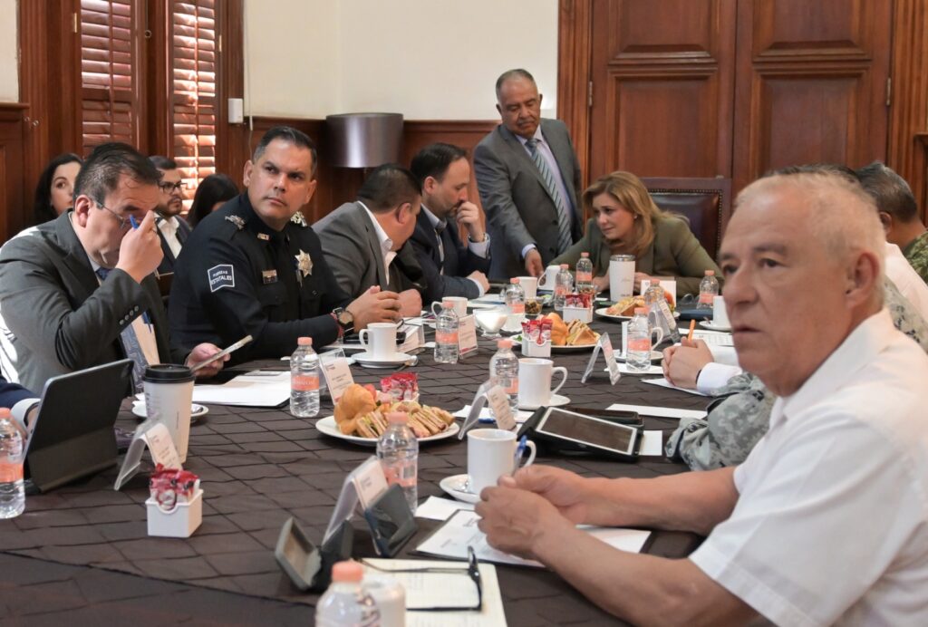 CHIHUAHUA.- La gobernadora Maru Campos encabezó esta mañana en Palacio de Gobierno, la reunión de la Mesa Estatal de Coordinación para la Construcción de la Paz, en la cual se dio seguimiento a las estrategias implementadas en la entidad en materia de seguridad.