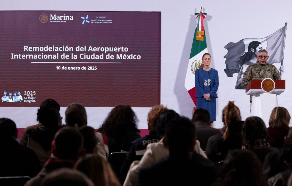 CIUDAD DE MEXICO.- La Presidenta de México, Claudia Sheinbaum Pardo, anunció la remodelación del Aeropuerto Internacional de la Ciudad de México, que será realizada por la Secretaría de Marina y que tendrá una inversión estimada de 8 mil millones de pesos (mdp) para mejorar la experiencia del usuario y la seguridad de operación.