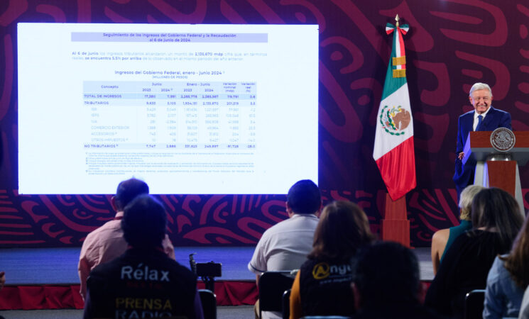 El total de ingresos general del 1° de enero al 6 de junio suma 2 billones 385 mil 567 millones de pesos, lo que significa 0.6 por ciento más de variación adicional respecto a 2023.