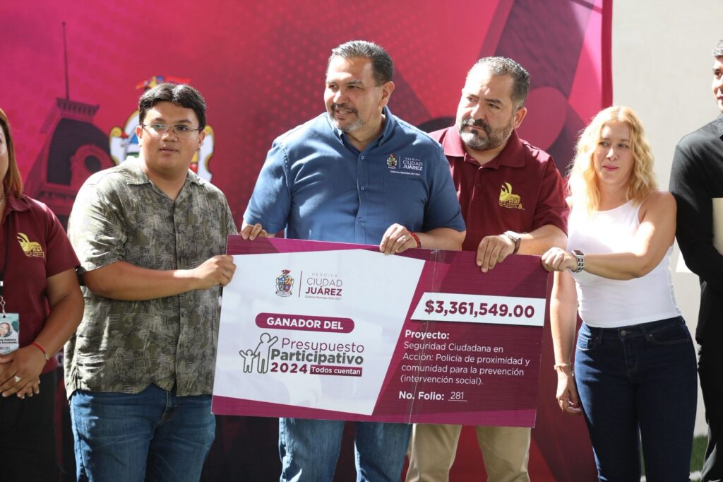 En el evento de clausura y rendición de resultados, se contó con la distinguida presencia del Presidente Municipal Cruz Pérez Cuellar, quien reconoció el impacto positivo de esta iniciativa en la seguridad y el bienestar de las familias juarenses. Como muestra de agradecimiento por su invaluable apoyo y compromiso mediante el presupuesto participativo, se le hizo entrega de un reconocimiento especial por su liderazgo y contribución a la prevención social en la comunidad.