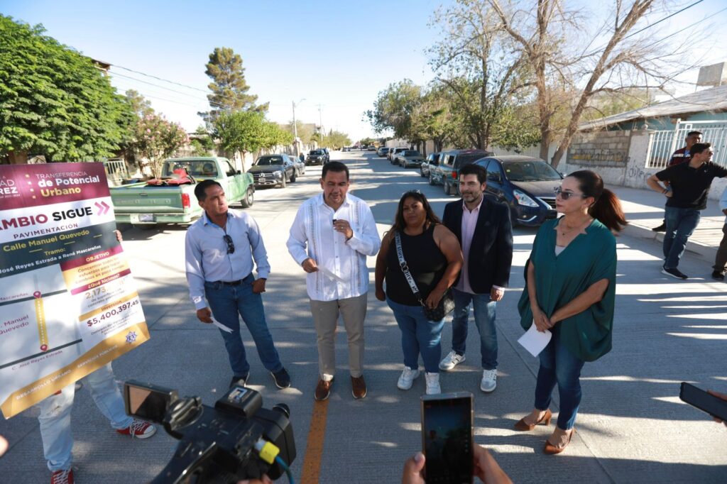 CD. JUAREZ, CHIH.- Con el objetivo de refrendar su compromiso con los juarenses y hacer de esta una mejor ciudad, hoy el Presidente Municipal, Cruz Pérez Cuéllar entregó a los vecinos de la colonia Los Alcaldes la pavimentación de la calle Manuel Quevedo.