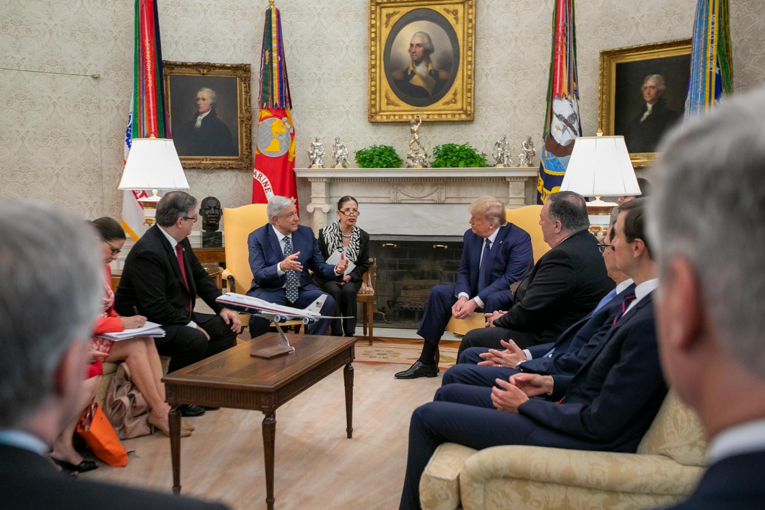 El presidente Andrés Manuel López Obrador asistirá a la cena de honor que ofrece su homólogo Donald Trump a él y la comitiva integrada por la secretaria de Economía, Graciela Márquez Colín; el secretario de Relaciones Exteriores, Marcelo Ebrard y el jefe de la Oficina de la Presidencia de la República, Alfonso Romo.