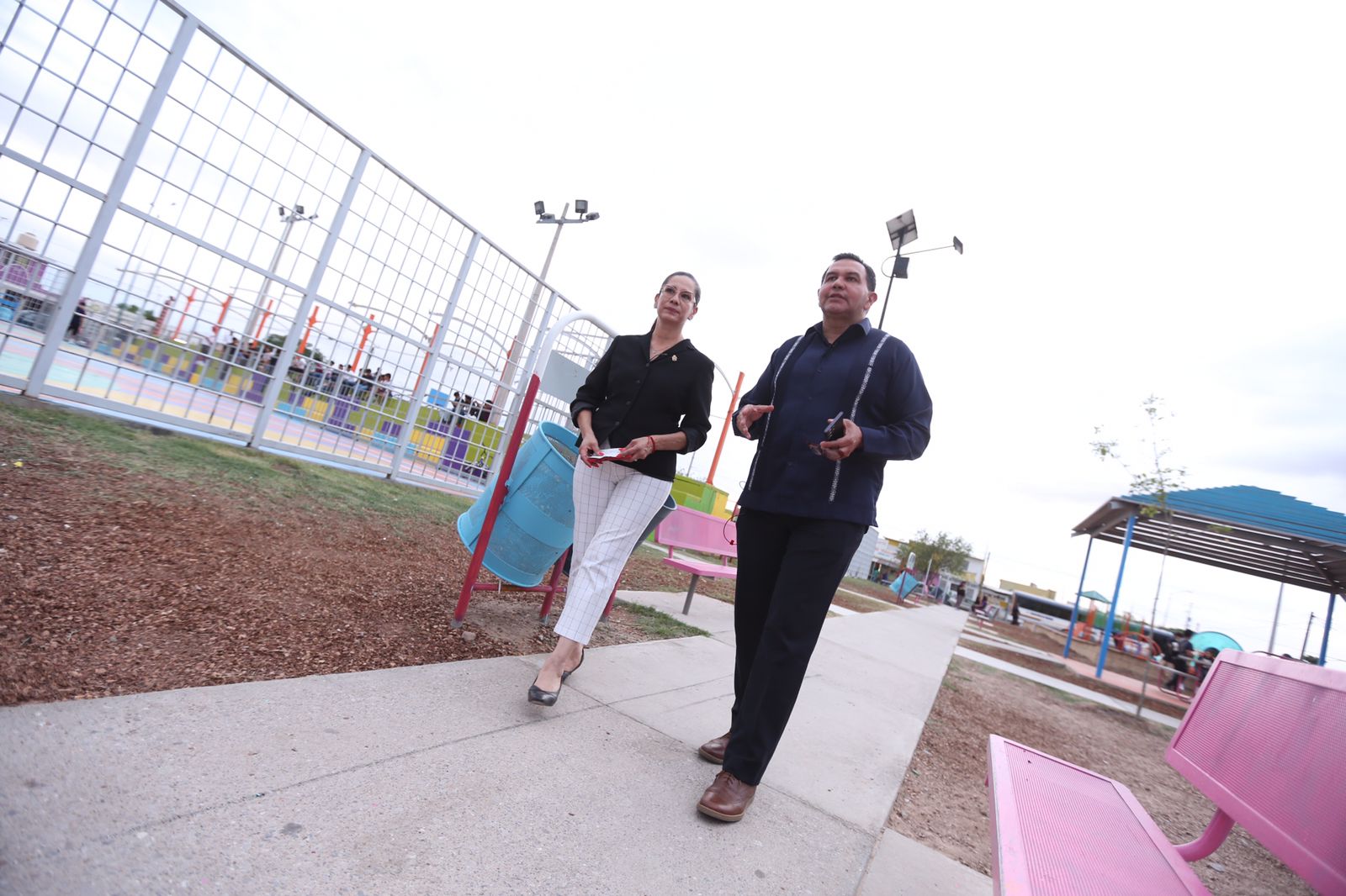 De esta forma el Presidente Pérez Cuéllar llevó a cabo un recorrido por el parque en compañía de Claudia Morales Medina, directora general de Desarrollo Urbano y Miguel Ángel Mendoza, titular del Instituto para la Cultura del Municipio, organismo que se encargo de intervenir el parque con urbanismo táctico.