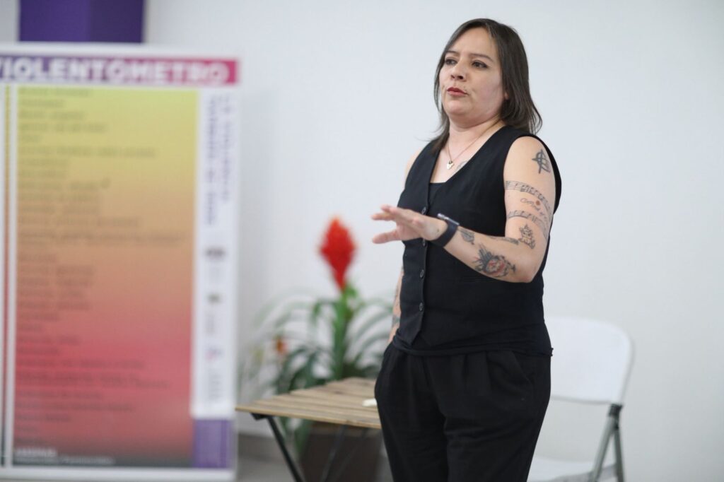 CD. JUAREZ, CHIH.- Con la finalidad de promover la inclusión de las disidencias sexuales, la prevención de la discriminación y la construcción de sociedades libres de estereotipos, el Instituto Municipal de las Mujeres (IMM) fue sede de la charla “La Política del Afecto y la Identidad”, brindada por Karla Arvizo Lozano, presidenta del Comité de la Marcha de las Diversidades de Chihuahua.