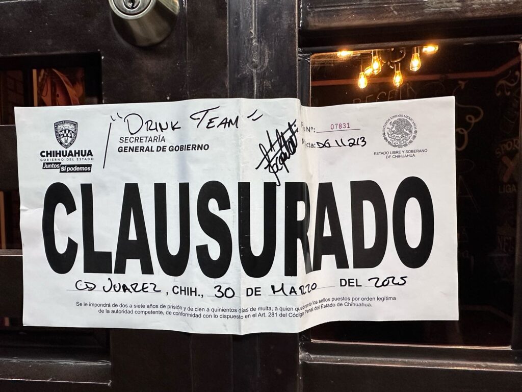 - Centro nocturno “Bar República de Ciudad Juárez” por operar fuera de horario y extracción de bebidas