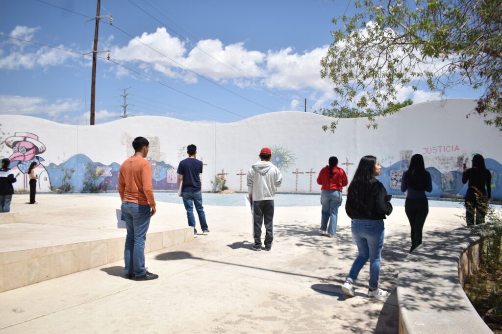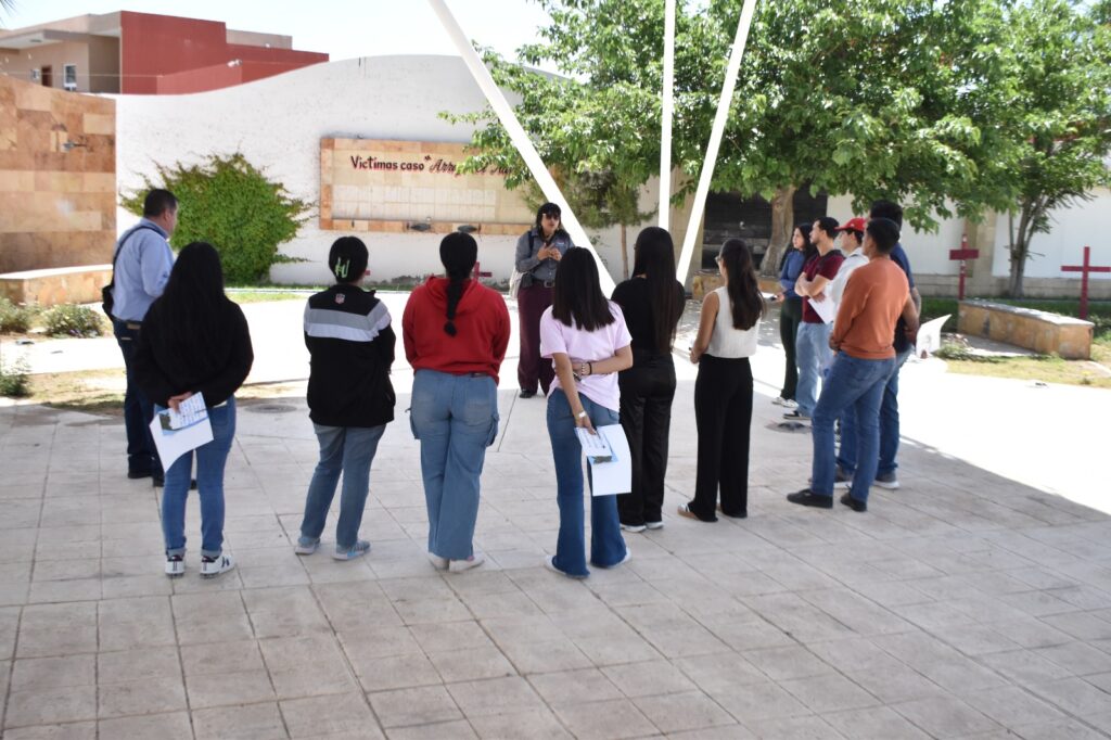 CD. JUAREZ, CHIH.- El Instituto Municipal de las Mujeres (IMM), a través del área de Investigación, realizó un recorrido guiado en el Memorial de Campo Algodonero, dirigido a estudiantes de la Licenciatura en Seguridad y Políticas Públicas de la Universidad Autónoma de Ciudad Juárez (UACJ).