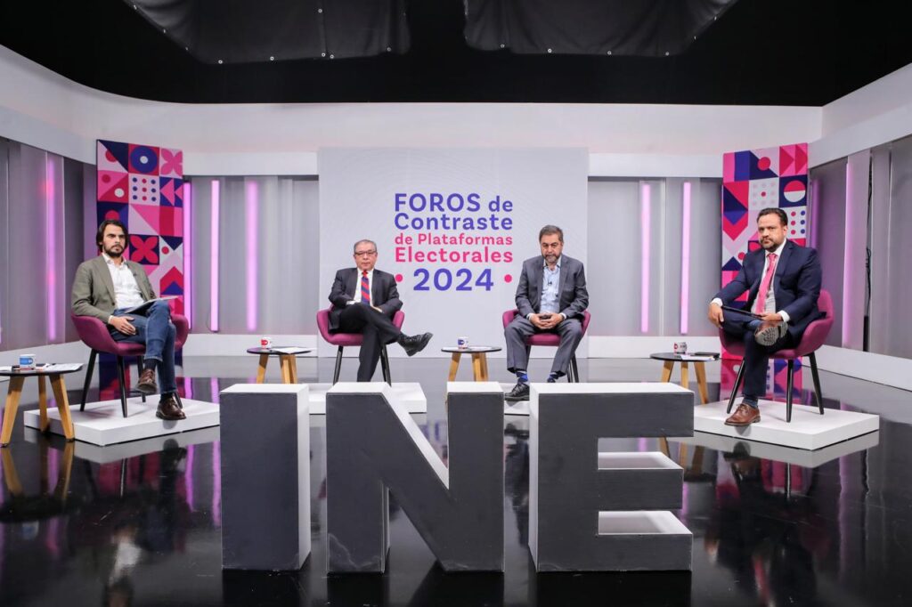 CIUDAD DE MEXICO.- El Instituto Nacional Electoral (INE) llevó a cabo hoy el segundo Foro de Contraste de Plataformas Electorales 2024, con los temas de Economía y Desarrollo Social,en el que participaron los representantes de las dos coaliciones y del partido político contendiente en la Jornada Electoral del 2 de junio de 2024, con el objetivo de que la ciudadanía cuente con los elementos necesarios para emitir un voto informado.