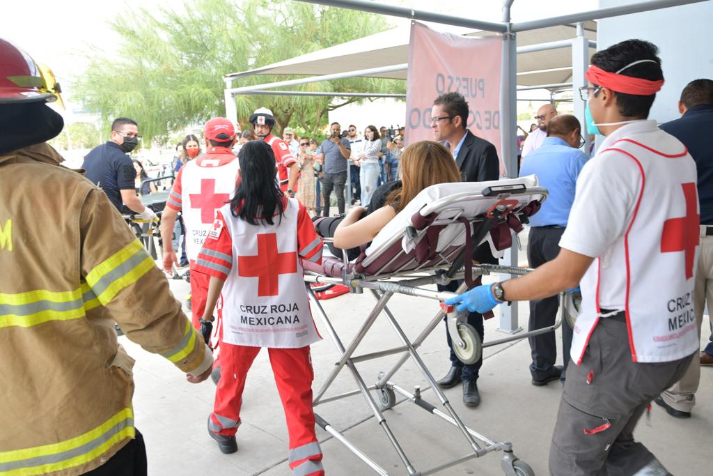 CD. JUAREZ, CHIH.- La Coordinación Estatal de Protección Civil (SSPE) realizó un simulacro con hipótesis de sismo en la Unidad Administrativa de Gobierno del Estado José María Morelos y Pavón (Pueblito Mexicano), en el cual fueron evacuadas 893 personas.