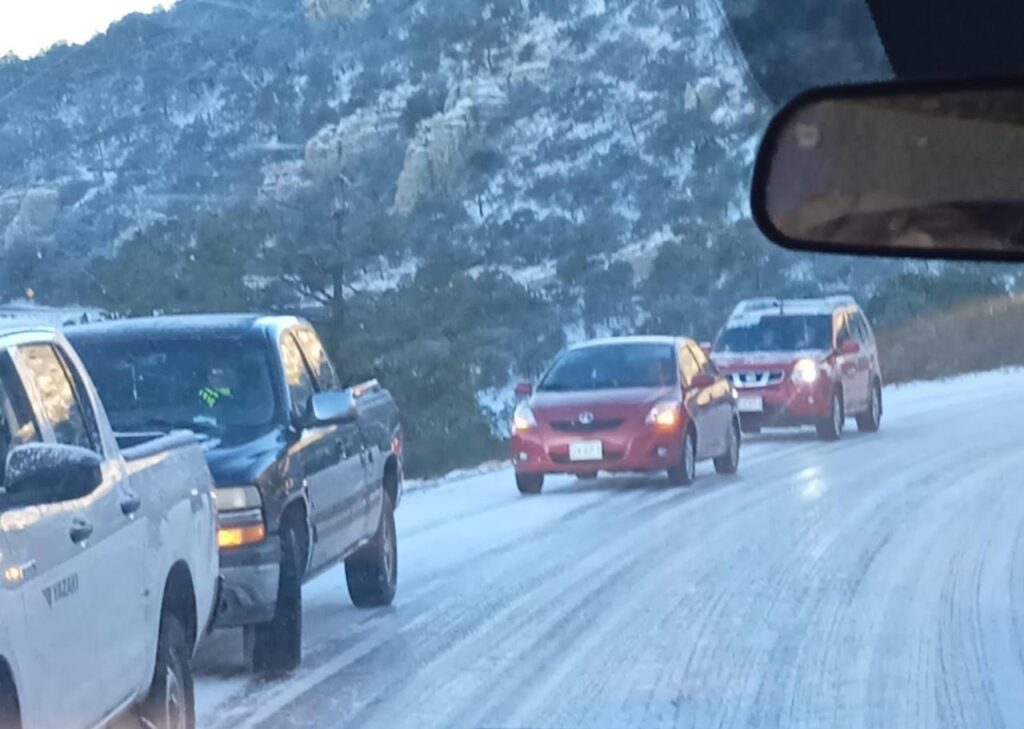 Por otro lado, en la vía Soto Maynez – Gómez Farías – Buenaventura, en el tramo conocido como “Las Emes”, se registró cristalización en la superficie de rodamiento, por lo que fue necesario cerrarlo temporalmente desde las 6:30 a.m. hasta las 10:55 a.m, tras las labores de aplicación de sal y arena.