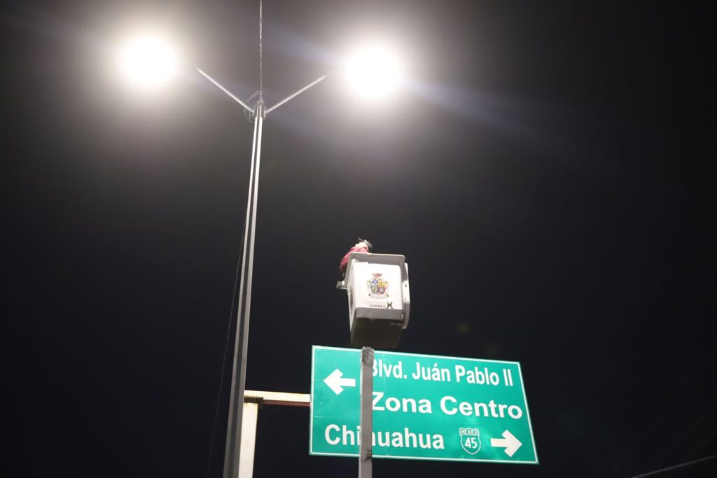 CD. JUAREZ, CHIH.- Con labores de mantenimiento la Dirección General de Servicios Públicos llevó a cabo la Cruzada Nocturna en la avenida Santos Dumont, abarcando el tramo desde la carretera Panamericana hasta el Eje Vial Juan Gabriel, dio a conocer Arturo Rivera Barreno, director general de la dependencia.