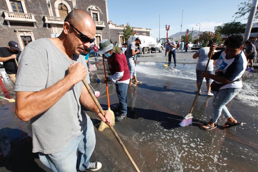 CD. JUAREZ, CHIH.- La Dirección General de Servicios Públicos Municipales llevó a cabo la Tercera Cruzada por el Centro Histórico, una actividad de limpieza que se estará realizando de manera permanente cada mes, con la intención de mejorar la imagen del sector, dio a conocer Ernesto Guevara Vázquez, titular de la dependencia.