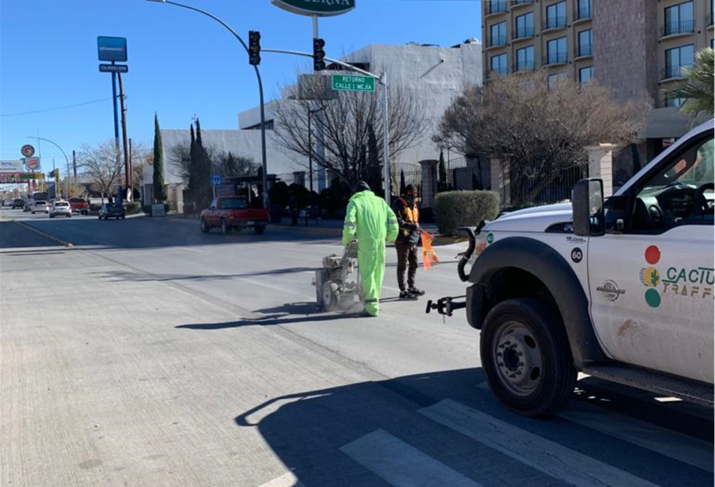CD. JUAREZ, CHIH.- Con el objetivo de brindar mayor seguridad a los guiadores y atendiendo las quejas de los ciudadanos, se llevaron a cabo trabajos de cepillado para borrar las líneas sobrantes que dividen los carriles en la Paseo Triunfo de la República.