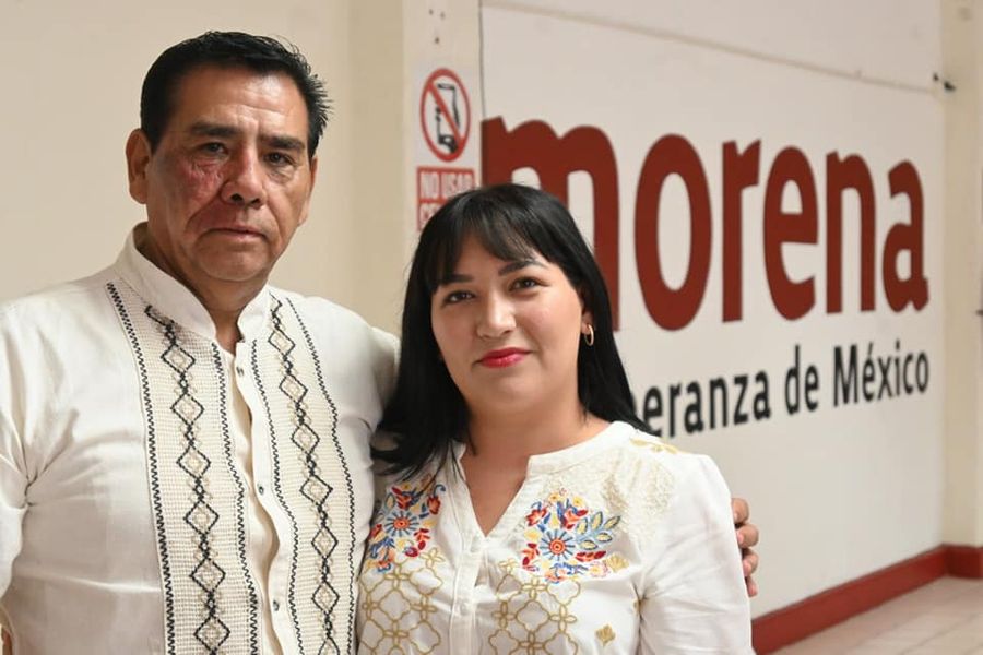 La presidenta del Comité Directivo Estatal de Morena, Brighite Granados De la Rosa y Martin Chaparro