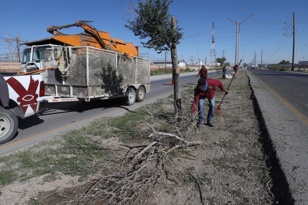 CD. JUAREZ, CHIH.- La Dirección de Parques y Jardines realiza trabajos de limpieza y mantenimiento del camellón central de la Carretera Panamericana, como parte de las acciones complementarias y de preparación para las actividades del próximo 2 de noviembre.
