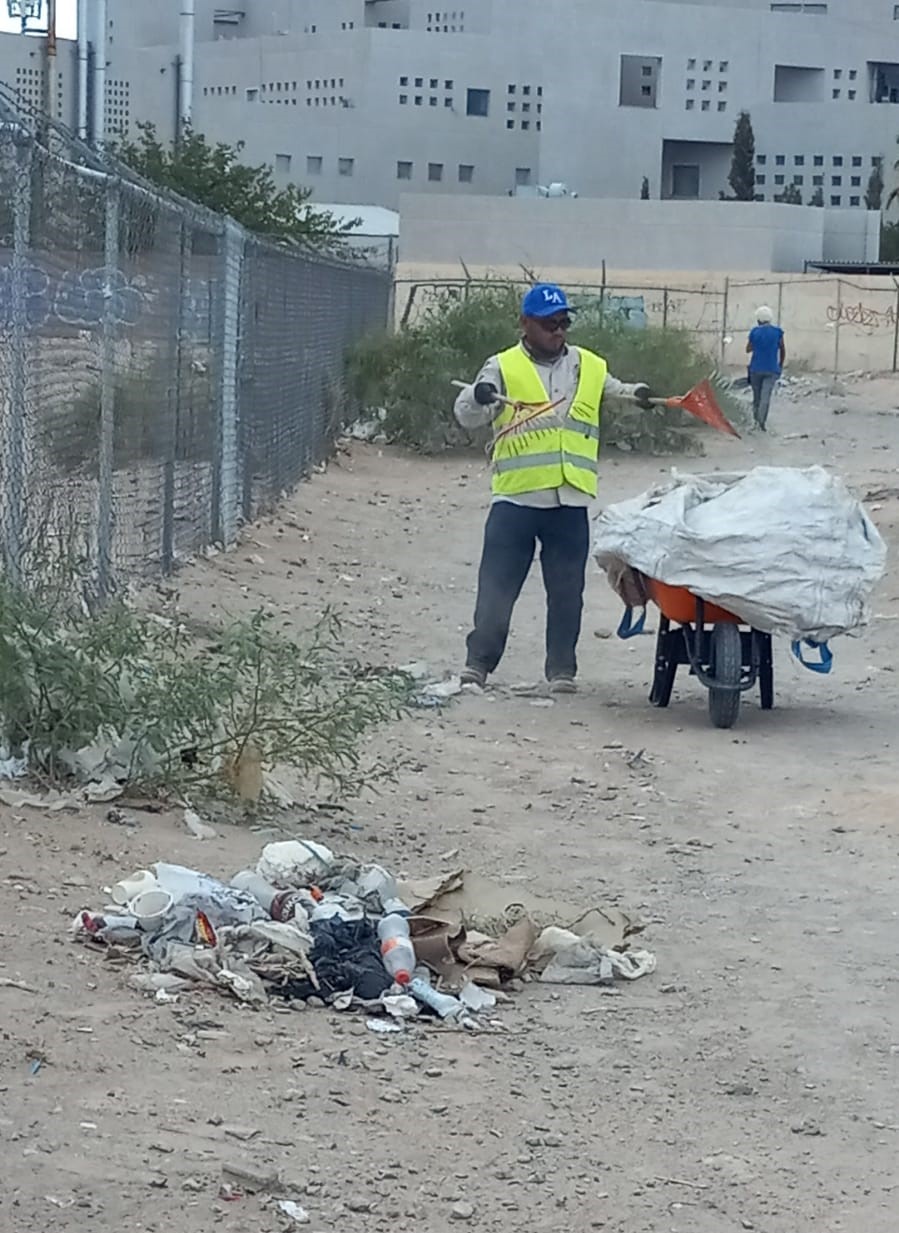 CD. JUAREZ, CHIH.- Personal de la Dirección de Limpia trabajó esta semana en la limpieza de la avenida Ramón Rayón, en el tramo comprendido entre la calle Rincón de la Extremadura y avenida De Las Torres, dio a conocer Gibran Solís Kanahan, titular de la dependencia.