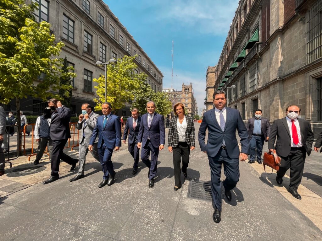 CIUDAD DE MEXICO.- En conjunto con diversos gobernadores, la mandataria del Estado de Chihuahua, Maru Campos Galván, fue recibida por el presidente de la República, Andrés Manuel López Obrador, para tratar diversos temas de salud pública como el nuevo sistema de vacunación en el país y estados faltantes en brindar el refuerzo de la inoculación contra COVID-19, así como la invitación a la integración de la red de hospitales del Instituto Mexicano del Seguro Social de los estados (IMSS) al programa federal “Bienestar”.