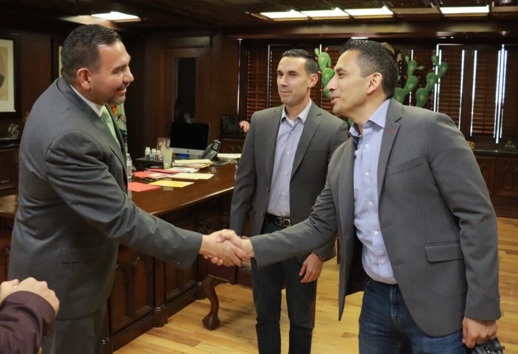 CD. JUAREZ, CHIH.- Este día el Presidente Municipal, Cruz Pérez Cuéllar, recibió en visita de cortesía a los árbitros César Arturo Ramos y Alberto Morín, ambos de nivel internacional y semifinalistas en Qatar 2022.