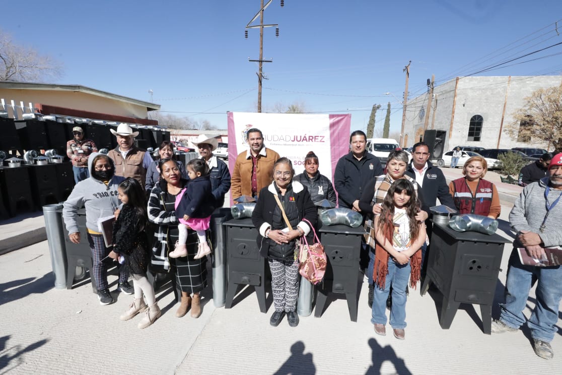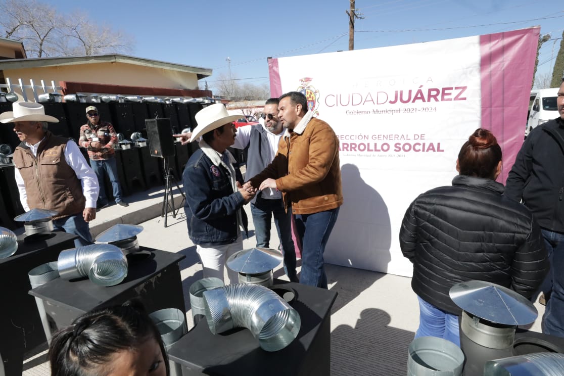 Como parte de su recorrido por el Valle de Juárez, el Presidente Municipal Cruz Pérez Cuéllar, en coordinación con Desarrollo Social, entregó calentones de leña, cobijas y rollos de hule para cobertura de techos en el ejido Tres Jacales.