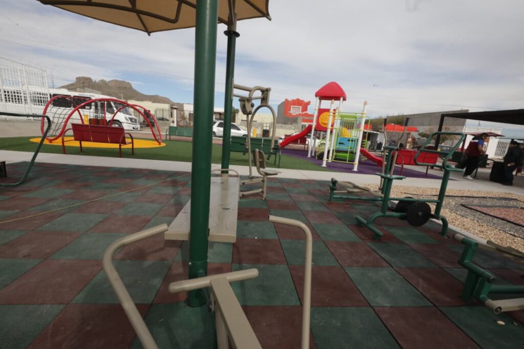 CD. JUAREZ, CHIH.- Siendo uno de los proyectos ganadores del Presupuesto Participativo, este día el Presidente Municipal, Cruz Pérez Cuéllar entregó a vecinos de la colonia Los Ojitos, los trabajos de rehabilitación del parque “Niñez de los Pies”.