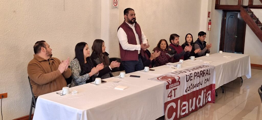 HIDALGO DEL PARRAL, CHIH.- El presidente del Consejo Estatal de Morena Hugo González Muñiz, presidió la mesa de presentación del libro “Claudia Sheinbaum: Presidenta” ante estudiantes del TEC y de la escuela Normal del Estado en el municipio de Parral, donde destacó la trascendencia de la participación de los jóvenes en la vida política del país.