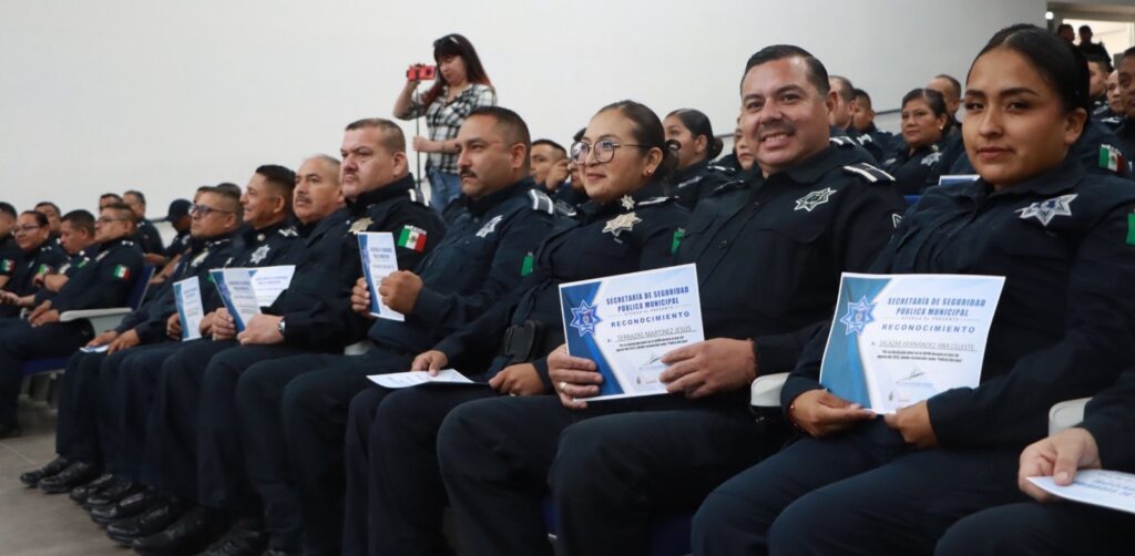 CD. JUAREZ, CHIH.- La Secretaría de Seguridad Pública Municipal reconoció a 60 agentes como “Policía del Mes” de agosto, en un evento realizado en las instalaciones de la Academia Municipal de Policía, destacando sus acciones heroicas, detenciones relevantes y aportaciones en labores de prevención y vigilancia en la ciudad.