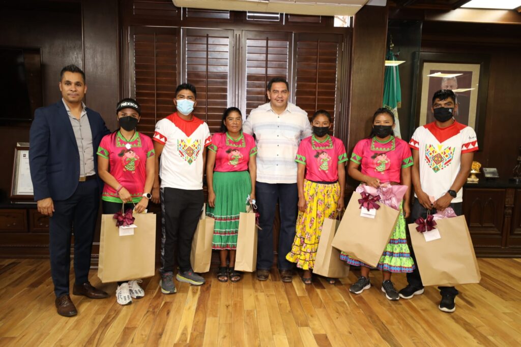 CD. JUAREZ, CHIH.- El Presidente Municipal, Cruz Pérez Cuéllar, reconoció a los hermanos Talina y Antonio Ramírez, corredores rarámuris que representaron a México en un maratón efectuado en la República Checa, en el que obtuvieron el tercero y primer lugar respectivamente.