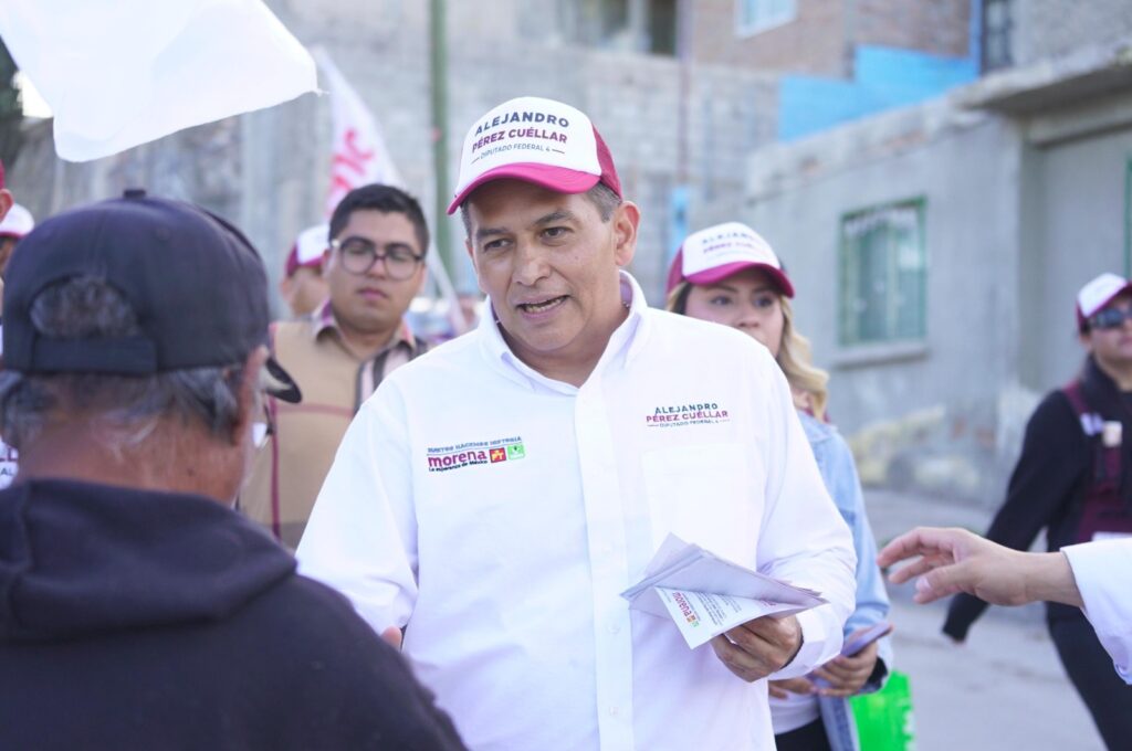 CD. JUAREZ, CHIH.– Como parte del propósito de hacer llegar sus propuestas a cada habitante juarense, el candidato de la coalición “Sigamos Haciendo Historia” (Morena, PT, PVEM) a Diputado Federal por el Distrito 04, Alejandro Pérez Cuéllar, recorrió las calles de la colonia Industrial, al poniente de la ciudad.
